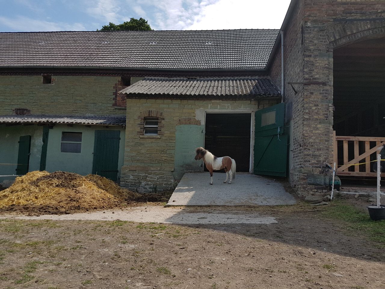Hallo zusammen, mein zwerg hat eine betonrampe an seiner box, von der er auf seinen großen paddock kommt.
